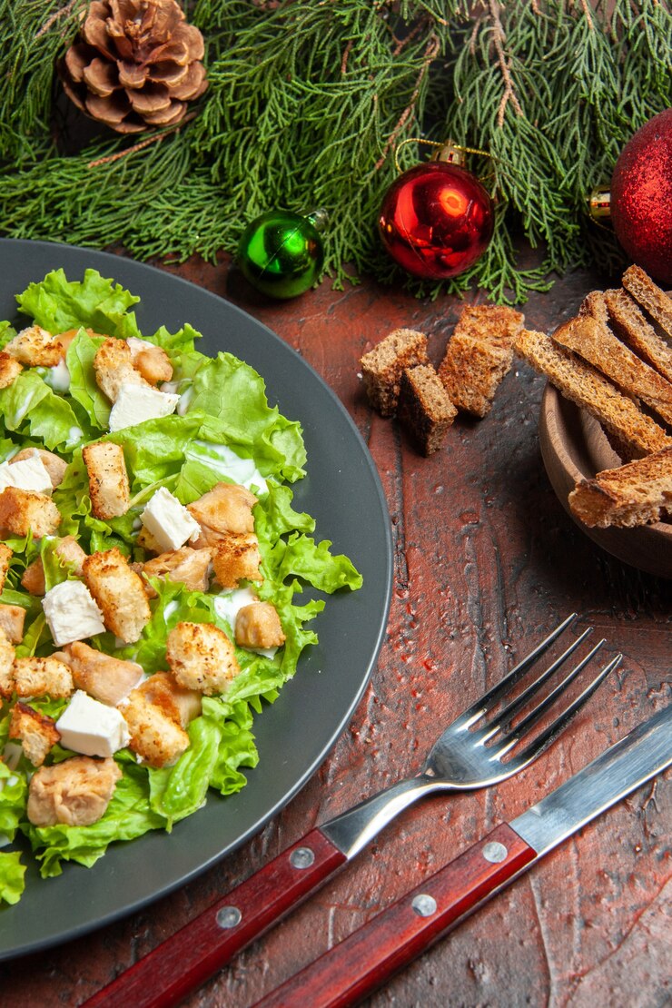 На праздничном столе уместно приготовить оригинальный куриный салат с сухариками и сырными шариками. Этот вариант блюда отличается превосходным вкусом и нежной текстурой, и он станет отличным выбором для тех, кто предпочитает избегать майонез.