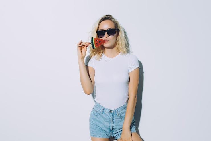 В базовом гардеробе каждой девушки обязательно присутствуют классические футболки. К ним относятся однотонные модели, не имеющие принтов, вышивок или наклеек. На лето 2022 года обязательно следует приобрести три футболки – белую, серую и черную. Это будут базовые вещи, поскольку они сочетаются с любой одеждой. Их можно носить со строгими брюками, юбками, джинсами. Необычно футболки будут смотреться в деловых образах, под пиджаком.