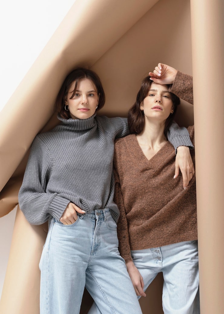 Не существует более удачного кроя модных женских кофт 2022 года для женщин с пышными формами. Продуманный вырез способен скрыть неровности в области живота и деликатно подчеркнуть линию бюста. Поэтому этот фасон станет оптимальным выбором для обладательниц большой груди. Декольте визуально стройнит фигуру и удлиняет шею. Если у вас выраженная талия, вы можете носить такую модель, заправленной в юбку с высокой талией.