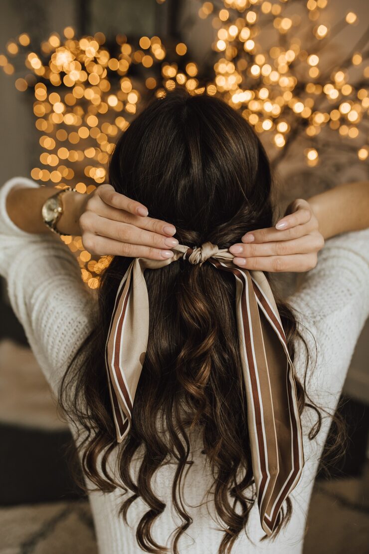 - учитывать структуру волоса — голливудская волна или низкий хвост без начеса у корней идеально подойдут для прямых гладких волос, пушистые и кудрявые лучше собрать в пучок или сделать из них легкие волны;