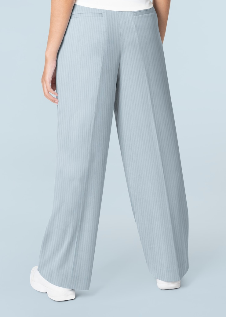 - в моде брюки палаццо — широкие с высокой талией, длиной до пола.