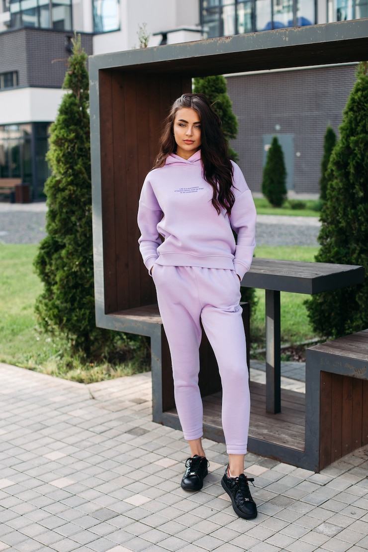 В 2022 году для спортивных женских костюмов дизайнеры предложили разнообразные варианты толстовок и брюк.