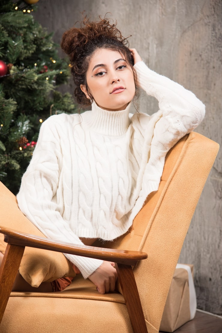 - В зимнем сезоне востребованы модели, стилизованные под объемный свитер. Обычный свитер с широкой резинкой и косами стал больше, а также дополнился рюшами, акцентирующими зону декольте.