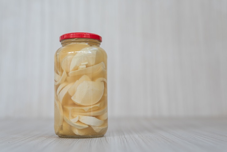 - Залейте лук горячим маринадом, убедившись, что он полностью покрыт жидкостью.