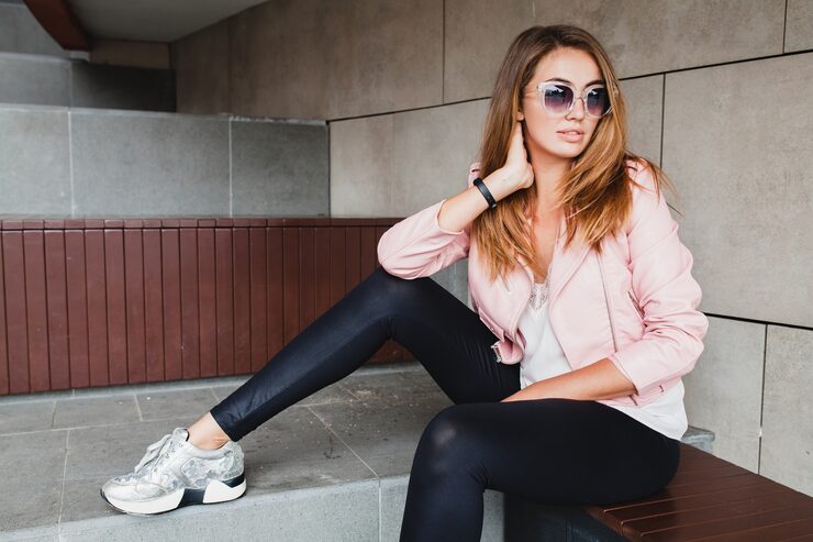Лосины любят объемный верх и массивную обувь. Это не только добавляет визуальной гармонии, но и делает образ актуальным. Важный совет: играйте с пропорциями, но не перегружайте.