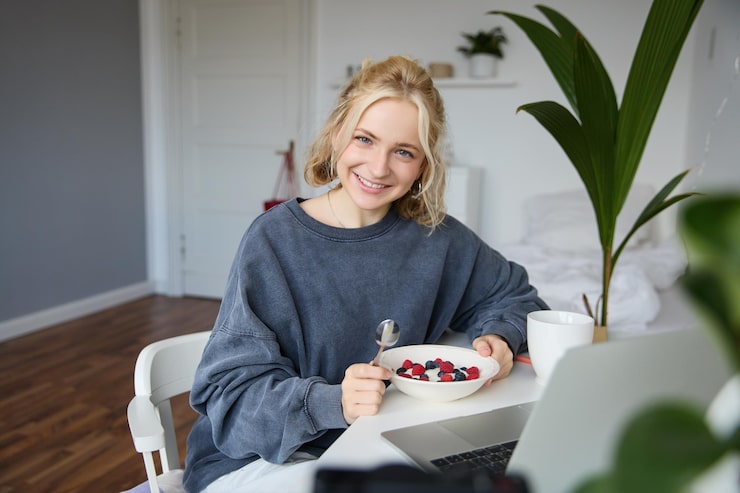 - Полноценный и сбалансированный завтрак, включающий овсянку, йогурт и фрукты, поможет мягко восполнить запас энергии после пробуждения.