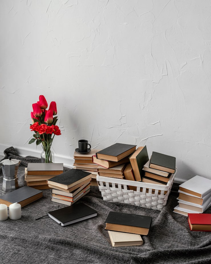 Кофейный столик – здесь удачно смотрятся крупные книги с яркими обложками, сложенные небольшими стопками (2–3 экземпляра). Сверху можно разместить свечу, небольшую вазу или декоративный предмет.