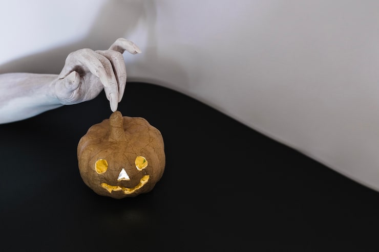 Если хочется легкой жути – сделайте это тонко. Поставьте пару керамических черепов, свечи в форме рук, или добавьте постеры с арт-графикой в духе хоррор-нуара. Это не лобовой декор, а стильный штрих, который считывается как настроение, а не карнавал.